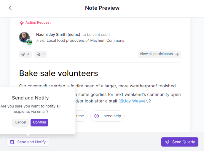 Email notifications in Notes help turn your information fire hose into a faucet. Everything is muted by default (yay!), so you get a single email for any conversation, and can just turn up the ones you'd like to hear more about.