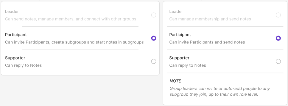 - Group Supporters can reply to notes and join open subgroups.