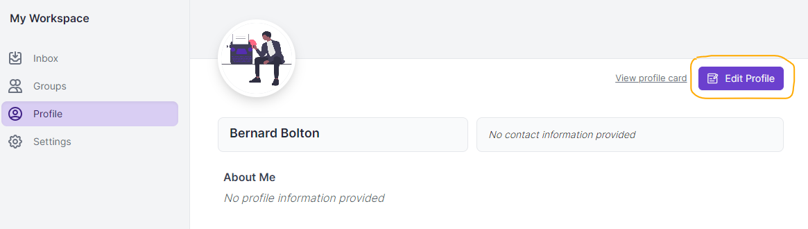 Does what it says on the tin. Here's where you make changes to your profile picture and information. However, instead of needing a separate profile for each group space you join, this comes along with you for all groups you join with your account.
